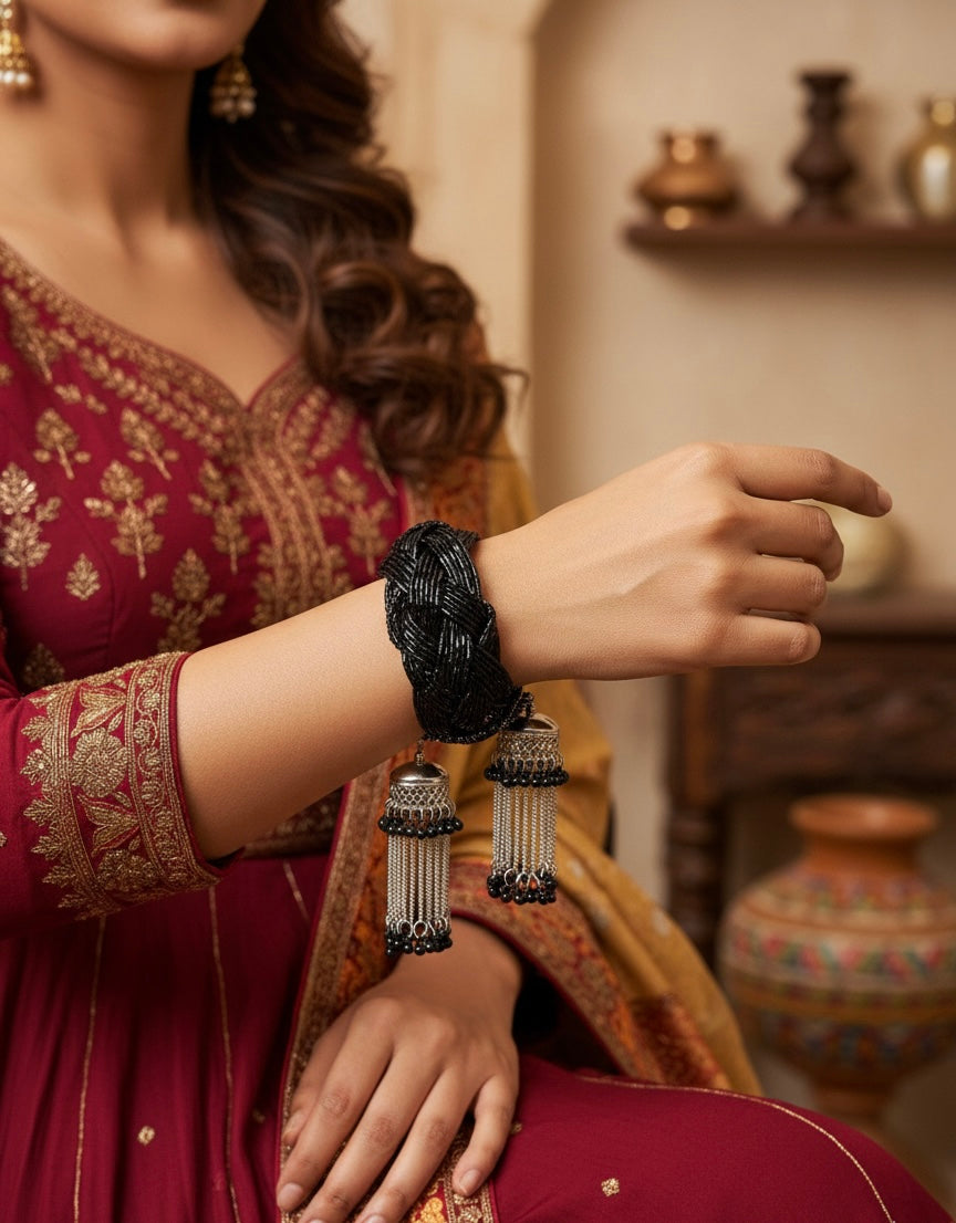 Black Beaded Bracelet with Jhumka