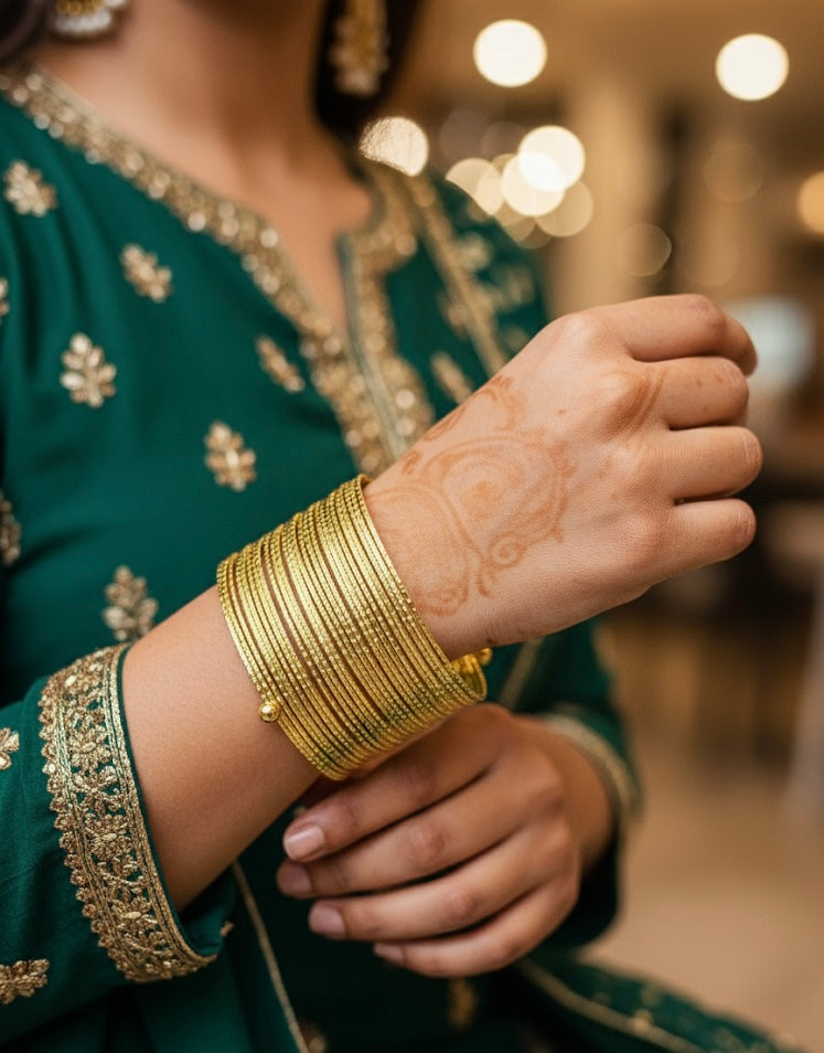 This set of 2 Trendy Multi-Layered Golden Coil Adjustable Bracelets features an elegant coil design layered for visual impact and versatility. Crafted with a refined golden finish, each bracelet adjusts to ensure a comfortable fit, making them ideal for a range of wrist sizes. Perfectly balancing modern trends with timeless appeal, these bracelets add a luxurious accent to both casual and formal attire.