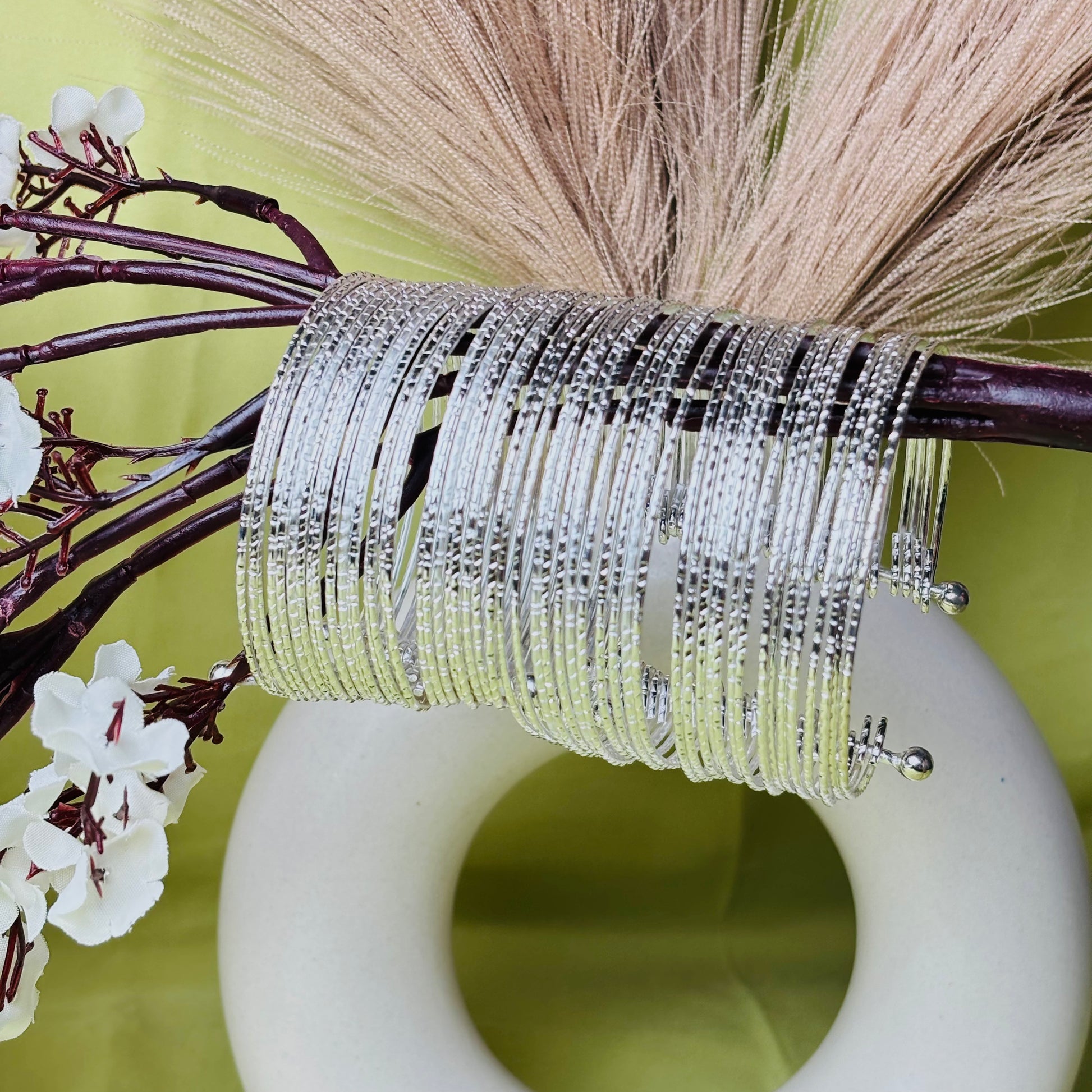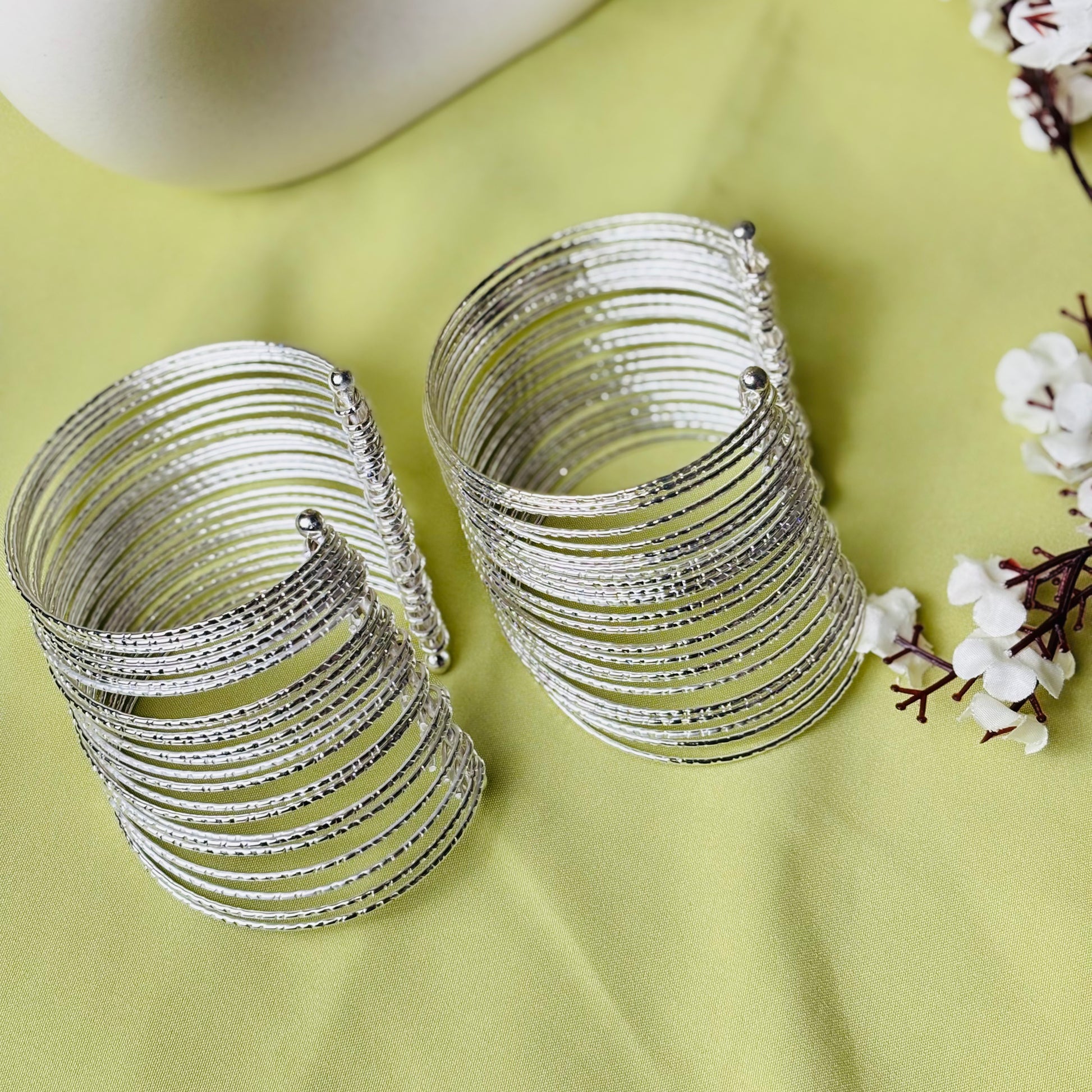 Set of 2 Trendy Multi-Layered Silver Coil Adjustable Bracelet
